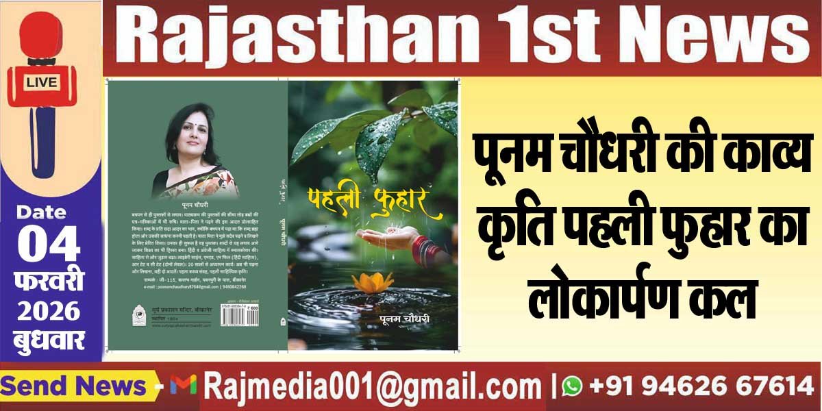 पूनम चौधरी की काव्य कृति पहली फुहार का लोकार्पण कल-Bikaner News