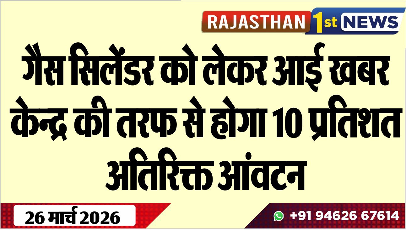 गैस सिलेंडर को लेकर आई खबर, केन्द्र की तरफ से होगा 10 प्रतिशत अतिरिक्त आंवटन-Rajasthan News