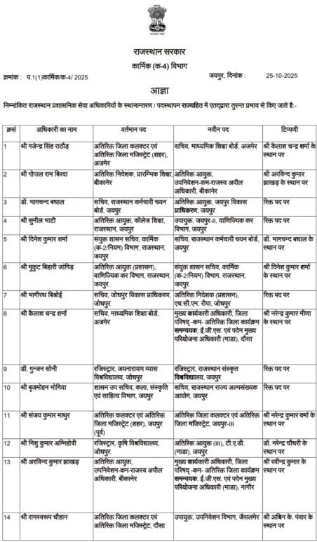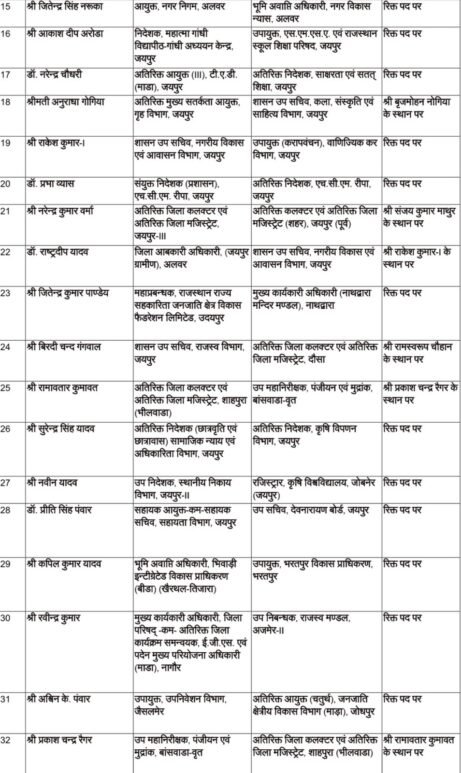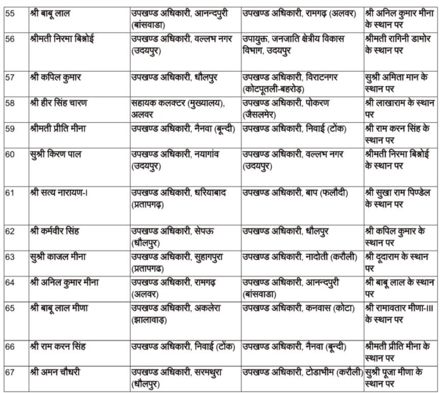 राजस्थान 1st न्यूज,बीकानेर। प्रदेश में आरएएस अधिकारियों के तबादलें किए गए है। 67 आरएएस अधिकारियों को इधर से उधर किया गया है। जिसमें बीकानेर में दो बदलाव हुए है। जिनमें गोपाल राम बिरदा को प्रारभिंक शिक्षा से अतिरिक्त आयुकत उपनिवेशन बीकानेर,अरविंद कुमार झाखड़ को बीकानेर से नागौर मुख्य कार्यकारी अधिकारी लगाया गया है।