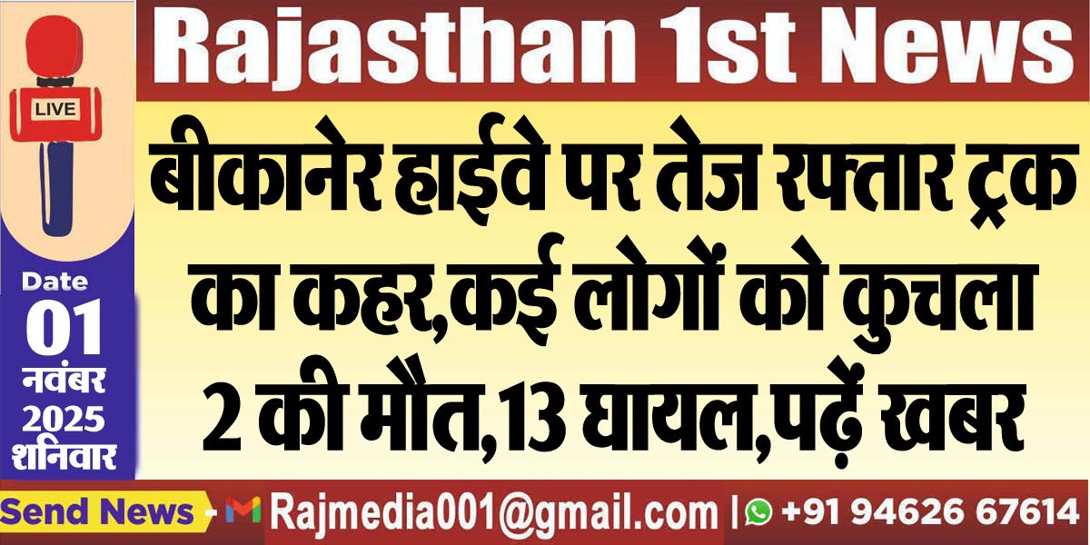 बीकानेर हाईवे पर तेज रफ्तार ट्रक का कहर,कई लोगों को कुचला,2 की मौत,13 घायल,पढ़ें खबर-Accident News