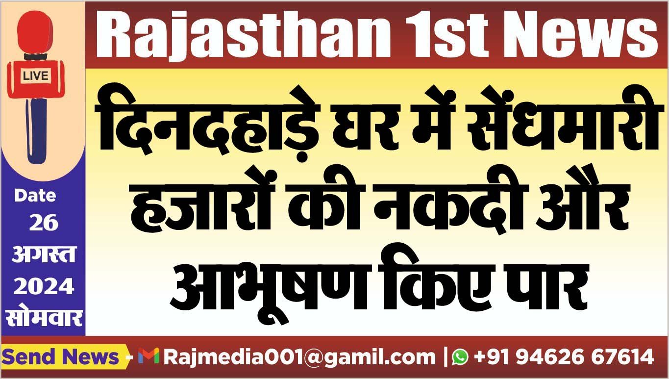 दिनदहाड़े घर में सेंधमारी,हजारों की नकदी और आभूषण किए पार