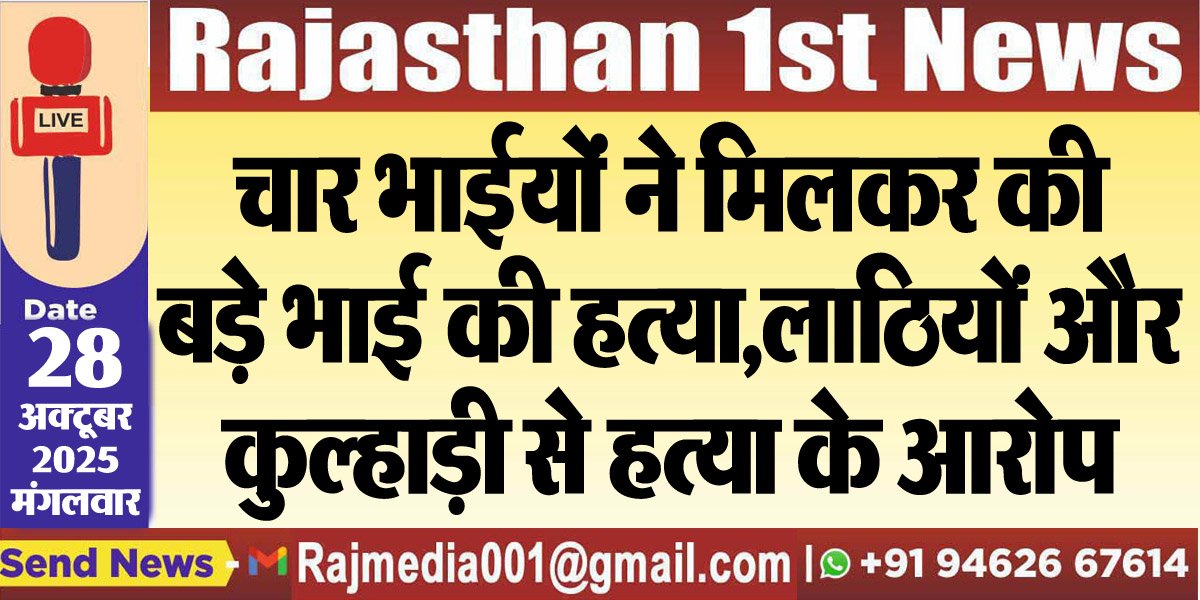 चार भाईयों ने मिलकर की बड़े भाई की हत्या,लाठियों और कुल्हाड़ी से हत्या के आरोप-Rajasthan News