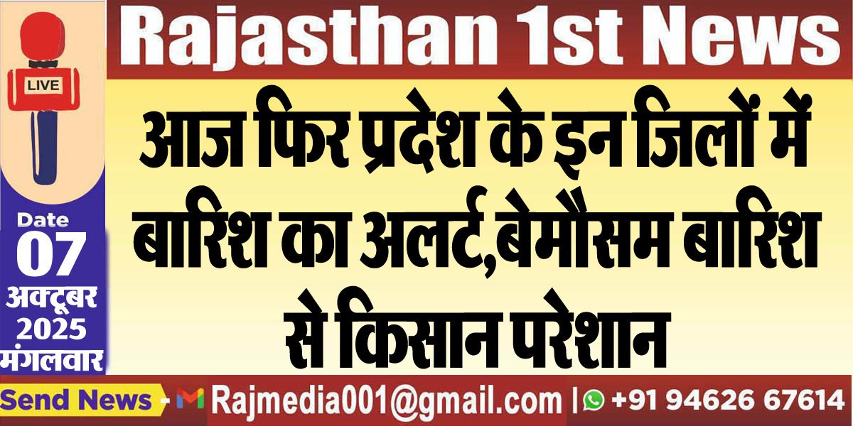 आज फिर प्रदेश के इन जिलों में बारिश का अलर्ट,बेमौसम बारिश से किसान परेशान-Today Weather