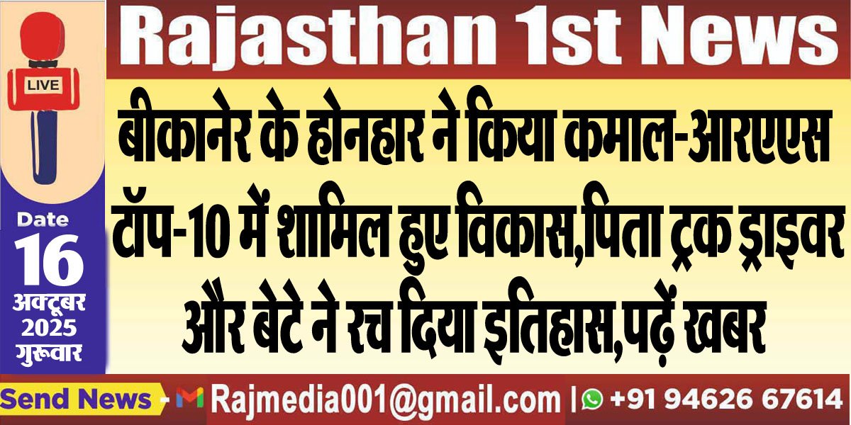 बीकानेर के होनहार ने किया कमाल-आरएएस टॉप-10 में शामिल हुए विकास,पिता ट्रक ड्राइवर और बेटे ने रच दिया इतिहास,पढ़ें खबर