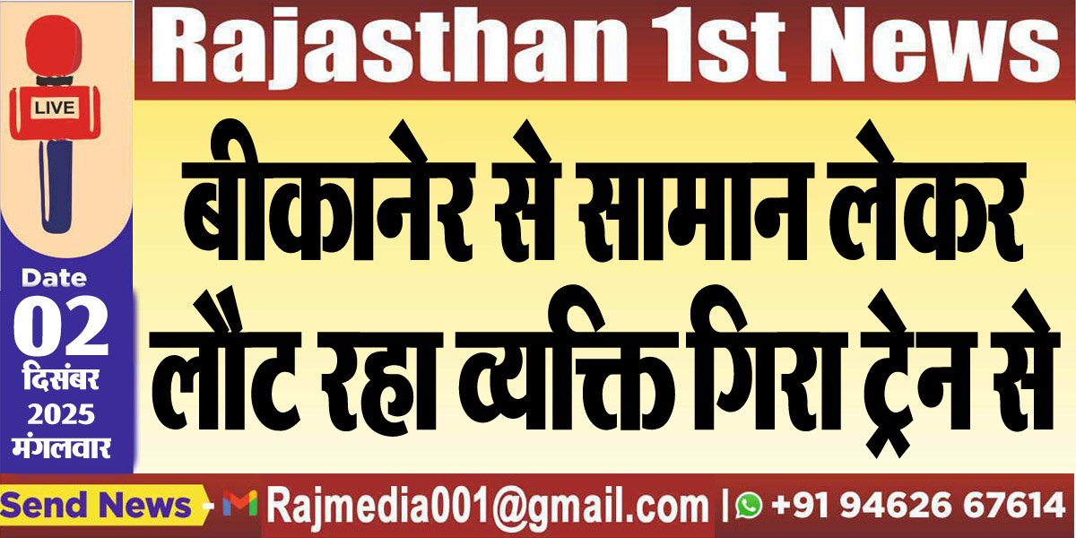 Bikaner News राजस्थान 1st न्यूज,बीकानेर। बीकानेर-रेवाड़ी पैसेंजर ट्रेन से व्यक्ति के गिर जाने की खबर सामने आयी है। घटना चुरू के रतनगढ़ के पास की है। जहां पर जुहारपुरा और देपालसर के बीच राकेश कुमार ट्रेन से नीचे गिर गया। जिसे आसपास के लोगों के सहयोग से अस्पताल ले जाया गया जहां पर उसका उपचार किया जा रहा है।