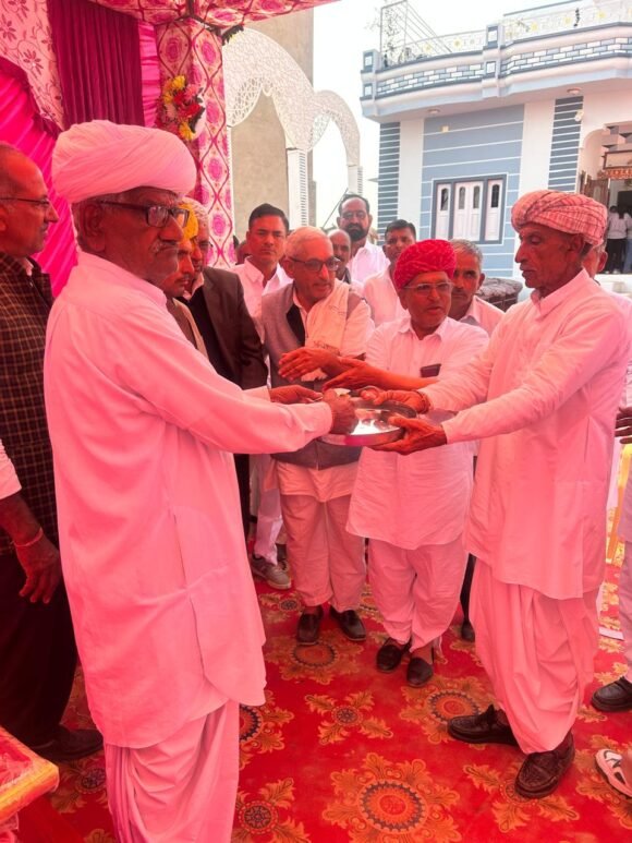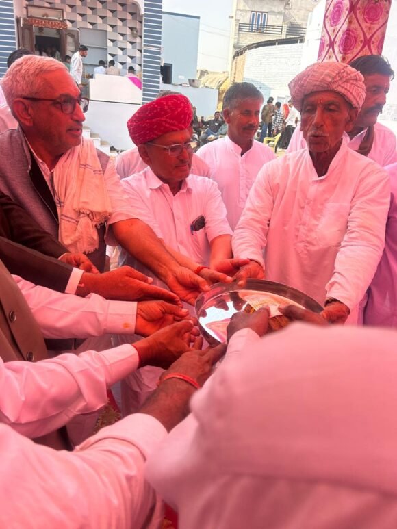 Bikaner News राजस्थान 1st न्यूज,बीकानेर। सामाजिक सौहार्द की मिशाल पेश करने की खबर सामने आयी है। एकतरफ जहां दहेज को लेकर हाय तौबा सी मची हुई है और दहेज के चलते पारिवारिक सम्बंध बिगड़ रहे है। वहीं दूसरी तरफ नोखा के गोदारा परिवार ने अनूठी मिशाल पेश की है। नोखा,बीकानेर खिचियासर गांव के चेतनराम गोदारा सचिव उरमूल ज्योति ,हनुमाना पटवारी लेखराम व.अ ने अपने छोटे भाई डूंगर राम के पुत्र जयकिशन की शादी सिर्फ एक रुपिया नारियल लें करके सादगी पूर्ण रीति-रिवाज से सम्पन की।