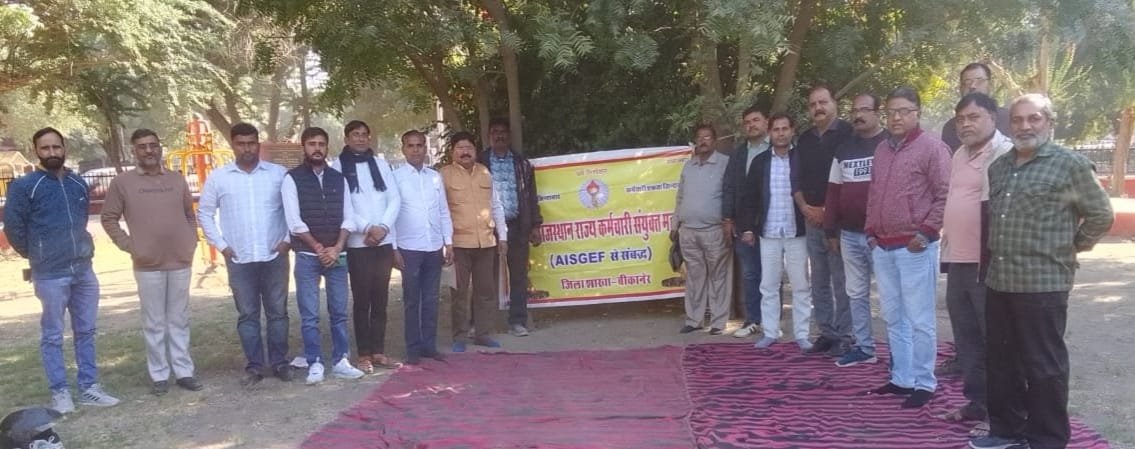 Bikaner News राजस्थान 1st न्यूज,बीकानेर। अखिल राजस्थान राज्य कर्मचारी संयुक्त महासंघ के तत्वावधान में 12 जनवरी 2026 को जयपुर में कर्मचारियों की विभिन्न मांगों के समर्थन में चेतावनी महारैली आयोजित होगी । रैली को सफल बनाने के लिए महासंघ की बीकानेर शाखा की तैयारी बैठक जिलाध्यक्ष पृथ्वीराज लेघा की अध्यक्षता में कर्मचारी मैदान में रविवार को संपन्न हुई। बैठक में जिलाध्यक्ष पृथ्वीराज लेघा ने बताया कि 14 दिसंबर को जयपुर के चेतन महा अधिवेशन में लिए निर्णय के अनुसार महासंघ के 11 सूत्री मांग पत्र के समर्थन में व सात संकल्पों को पूरा करने के लिए 12 जनवरी को जयपुर में कर्मचारियों की विशाल रैली आयोजित की जाएगी। सात संकल्पों में पदोन्नति विसंगति दूर करवाना एवं 8, 16, 24, 32 वर्ष की सेवा पर चयनित वेतनमान, वेतन विसंगति दूर करवाना व केंद्र के समान पे लेवल, पुरानी पेंशन योजना की सुरक्षा, संविदा एवं मानदेय कार्मिकों का नियमितीकरण, पारदर्शी स्थानांतरण नीति जारी करवाना व तृतीय श्रेणी शिक्षकों के स्थानांतरण, निजीकरण पर रोक लगाने व कर्मचारियों के मान, सम्मान व स्वाभिमान की सुरक्षा शामिल है।