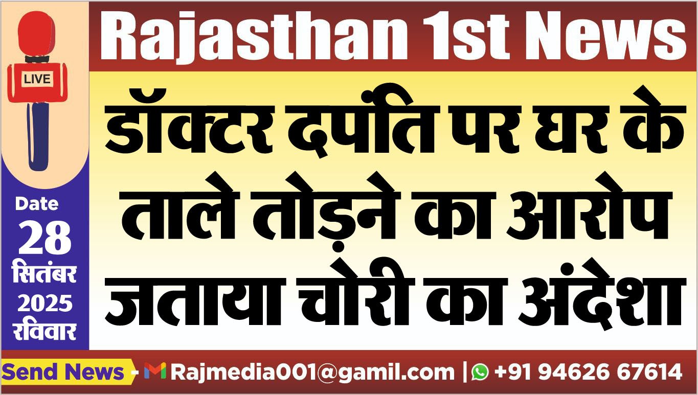 Bikaner News राजस्थान 1st न्यूज,बीकानेर। डॉक्टर दपंति पर घर के ताले तोडऩे का आरोप लगाते हुए मुकदमा दर्ज करवाया गाय है। मामला कोटगेट पुलिस थाना क्षेत्र में 27 सितंबर की सुबह 9 बजे के आसपा गोगागेट क्षेत्र का है। इस सम्बंध में जोधपुर के रहने वाले सुशील शर्मा ने जयपुर में रहने वाले डॉक्टर विक्रम तंवर,उसकी पत्नी डॉ. सुमन व अन्य के खिलाफ मुकदमा दर्ज करवाया है।