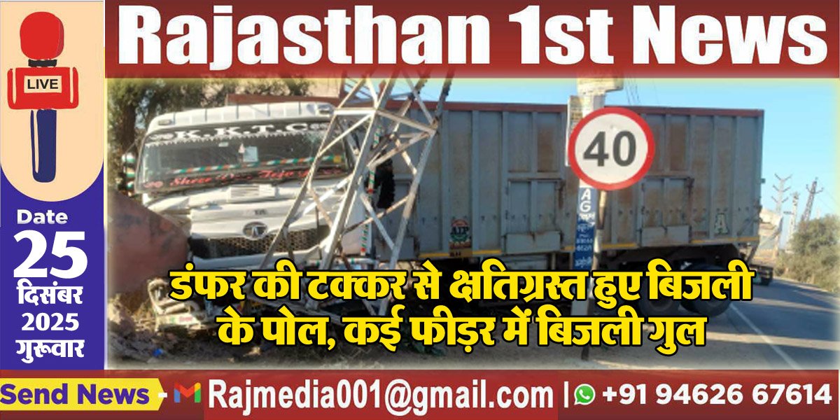 Bikaner News राजस्थान 1st न्यूज,बीकानेर। डंफर द्वारा बिजली पोल को टकर मारने और कई क्षेत्रों में रात से बिजली के गुल हो जाने की खबर सामने आयी है। घटना श्रीडूंगरगढ़ के गांव रीडी में वीर बिग्गाजी मंदिर के पास की है। जहां पर बीती रात को डंफर बिजली के पोल से भिड़ गया।