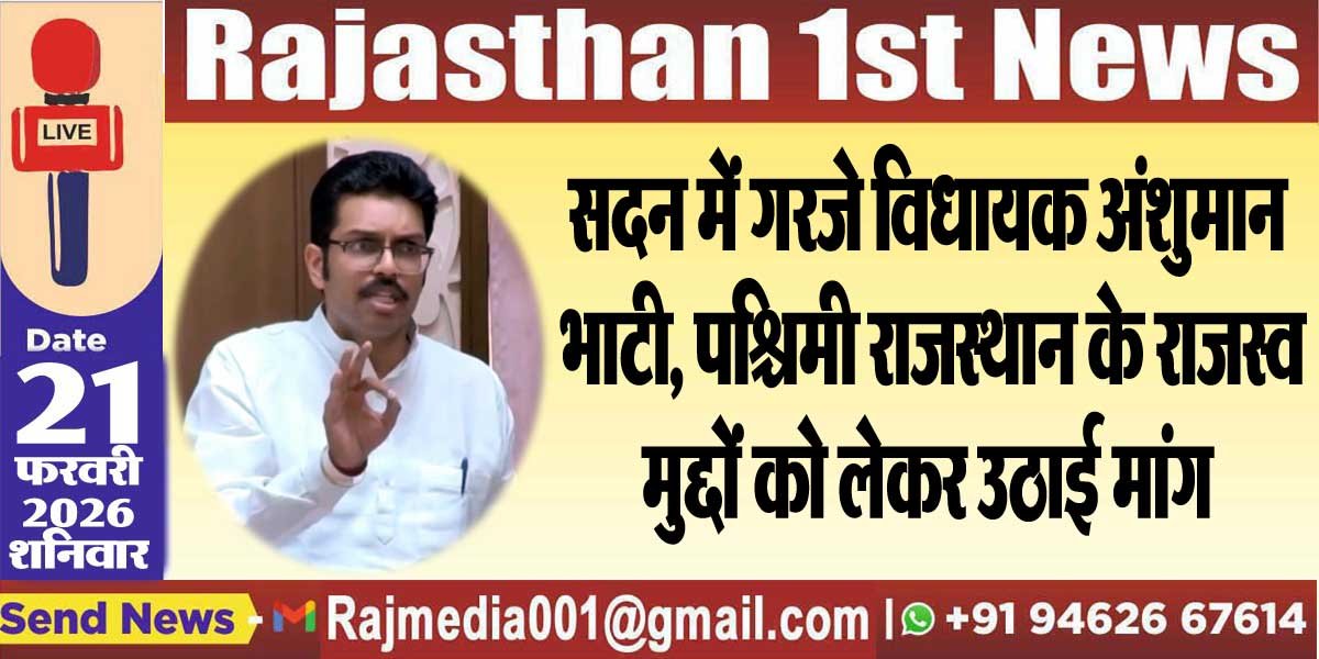 Bikaner News राजस्थान 1st न्यूज,बीकानेर। कोलायत विधायक अंशुमान सिंह भाटी ने राजस्थान विधानसभा में मांग संख्या 16 (राजस्व) पर चर्चा के दौरान पश्चिमी राजस्थान और विशेष रूप से कोलायत क्षेत्र से जुड़े महत्वपूर्ण मुद्दों को मजबूती से उठाया।