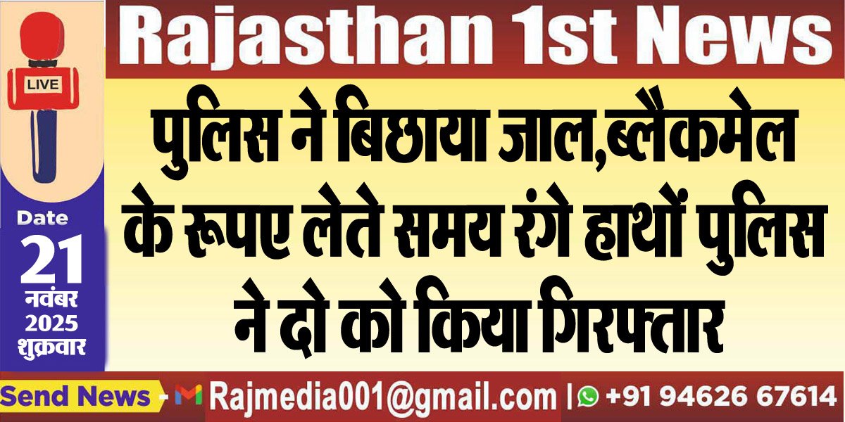 Bikaner News राजस्थान 1st न्यूज,बीकानेर। ब्लैकमेल कर रूपए मांगने और झूठे रेप के मामले में फसाने की धमकी देने के मामले में पुलिस ने महिला सहित दो को गिरफ्तार किया है। यह कार्रवाई चुरू के बीदासर क्षेत्र में की गयी है। जहां पर परिवादी चंद्र प्रकाश छापोला ने इस संबंध में रिपोर्ट दर्ज कराई थी। रिपोर्ट के अनुसार, सत्यनारायण प्रजापत निवासी दड़ीबा एक बीकानेर निवासी महिला के साथ मिलकर चंद्र प्रकाश को झूठे रेप केस में फंसाने की धमकी दे रहा था और उससे 20 लाख रुपये की मांग कर रहा था। धमकी के कारण पीडि़त चंद्र प्रकाश पहले ही 3 लाख रुपये दे चुका था। शिकायत की पुष्टि होने के बाद पुलिस टीम ने जाल बिछाया। पुलिस ने दोनों आरोपियों को 2 लाख रुपये लेते हुए रंगे हाथ गिरफ्तार कर लिया।