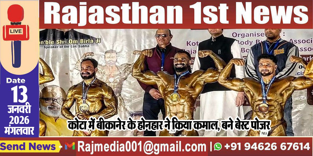 Bikaner News राजस्थान 1st न्यूज, नेटवर्क। कोटा में आयोजित हुई राज्य स्तरीय बॉडी बिल्डिंग प्रतियोगिता सीनियर मिस्टर राजस्थान के प्रमुख खि़ताब बेस्ट पोजर ऑफ़ राजस्थान के खि़ताब पर बीकानेर के शाकिब अली ने कब्ज़ा जमाया । इस अवसर पर बीकानेर जिला बॉडी बिल्डिंग संगम के अध्यक्ष अरुण व्यास ने प्रसन्नता जताते हुए बताया की शाकिब की यह उपलब्धि समूचे बीकानेर खेल जगत हेतु गर्व की बात है क्योंकि राज्य प्रतियोगिता में हमेशा की भांति बीकानेर के बॉडी बिल्डर्स का दबदबा रहा है और 1 मुख्य खि़ताब के साथ 2 स्वर्ण और 4 रजत पदक सहित बीकानेर के बॉडी बिल्डर्स ने कुल 6 पदक अपने नाम किये। इसी कड़ी में संगम के सचिव आशुतोष स्वामी ने बताया की 55 किग्रा में तनवीर को स्वर्ण पदक, 90 किग्रा में शाकिब को स्वर्ण पदक तथा 60 किग्रा में रितेश झा को रजत, 65 किग्रा में लालकृष्ण वाल्मीकि को रजत, महिला वर्ग में हेमलता सर्वटे को रजत पदक एवं मास्टर्स वर्ग में उम्मेद रंगा को रजत पदक प्राप्त हुआ।
