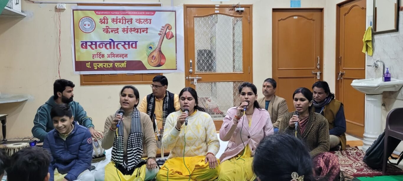 Bikaner News राजस्थान 1st न्यूज, बीकानेर। श्री संगीत कला केन्द्र संस्थान गंगाशहर में बसन्त पंचमी को वसन्तोत्सव मनाया गया। जिसमे कला केन्द्र के विद्यार्थी सुनिता स्वामी ने राग बसन्त्त में ख़्याल प्रस्तुत किया। भगवती (वामी, अमित तेजी, लड़ती स्वामी, आख देरडेकर, गोपिका सोनी, सीमा सिंह शेखावत, कृतिका व्यास, आनन्द पडिहार, मोहित मांडण, बजरंग शर्मा, तथा अन्य संस्थाओं के विधार्थीयों ने भी अपनी प्रस्तुति प्रदान की। केंद्र के अध्यक्ष डालचन्द सेवग ने माँ सरस्वती का पूजन कर अपने उद्बोधन में कहा कि स्वर की देवी माँ सरस्वती के जनमोत्सव पर संगीत का आयोजन कर उनकी सच्ची आराधना है