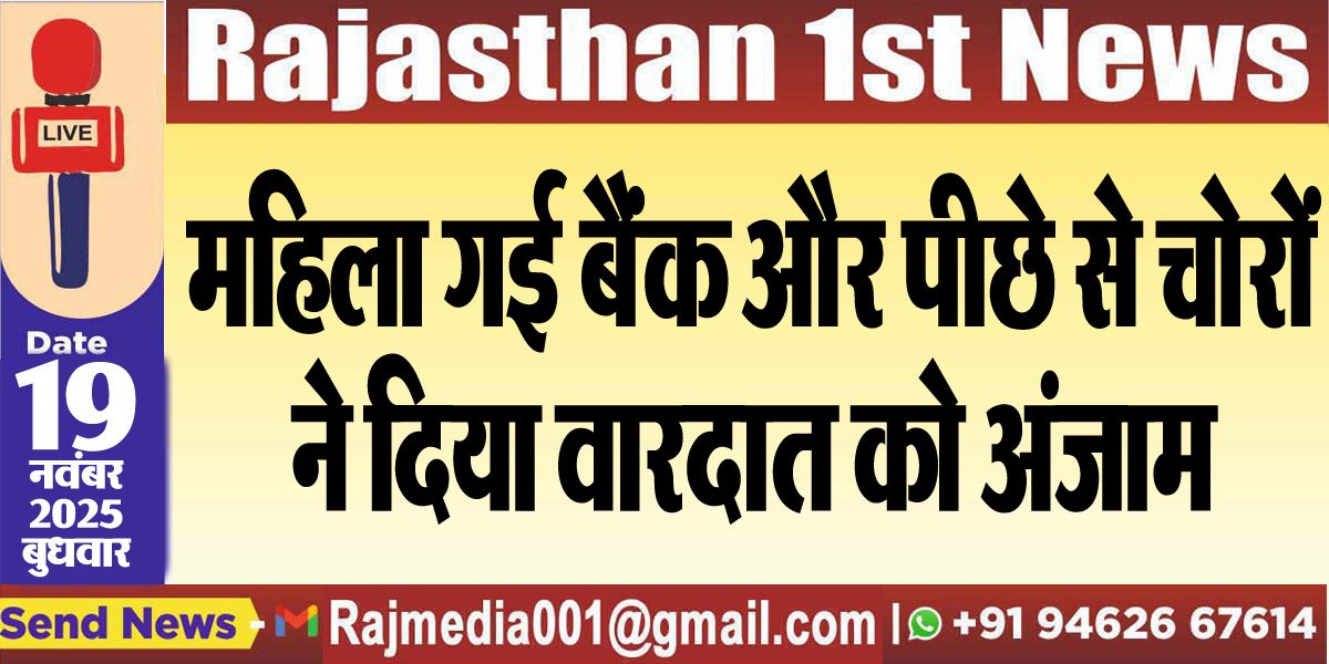 Bikaner News राजस्थान 1st न्यूज,बीकानेर। महिला के बैंक जाने और पीछे से माल चोरी हो जाने की खबर सामने आयी है। घटना बीछवाल क्षेत्र के पनपालसर में 17 नवंबर की दोपहर को साढ़े बारह बजे से तीन बजे के बीच की है। इस सम्बंध में बीछवाल थाने में जेठी कंवर पत्नी करणी सिंह ने अज्ञात चोर के खिलाफ मुकदमा दर्ज करवाया है।