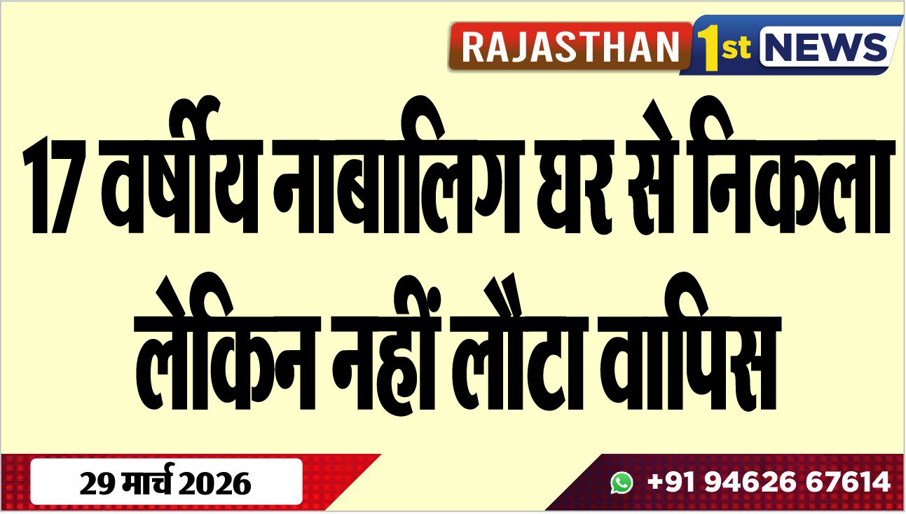 Bikaner News राजस्थान 1st न्यूज,बीकानेर। 17 वर्षीय नाबालिग के घर से निकल जाने की खबर सामने आयी हे। घटना जसरासर पुलिस थाना क्षेत्र से जुड़ी है। इस सम्बंध में बाधनू निवासी किशनाराम ने रिपोर्ट दी है। परिवादी ने बताया कि उसका 17 वर्षीय बेटा घर से बिना बताएं कहीं निकल गया लेकिन वापस नहीं लौटा है। परिवादी की रिपोर्ट पर पुलिस ने मुकदमा दर्ज कर जांच शुरू कर दी है।