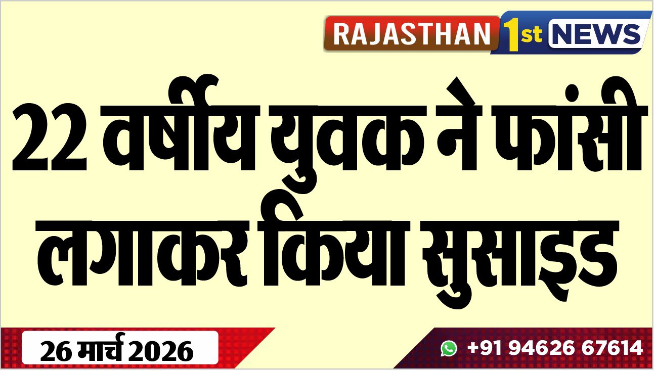 Bikaner News राजस्थान 1st न्यूज,बीकानेर। 22 वर्षीय युवक द्वारा सुसाइड करने की खबर सामने आयी है। घटना बीछवाल पुलिस थाना क्षेत्र के एस-144 आरसीपी कॉलोनी में 24 मार्च की रात को 12 बजे के आसपास की है। इस सम्बंध में आरसीपी कॉलोनी के रहने वाले शक्ति सिंह ने रिपोर्ट दी है। परिवादी ने बताया कि उसके भतीजे ने रात को 12 बजे घर में फांसी लगाकर जीवनलीला समाप्त कर ली। पुलिस ने प्रार्थी की रिपोर्ट के आधार पर मर्ग दर्ज कर जांच शुरू कर दी है ।