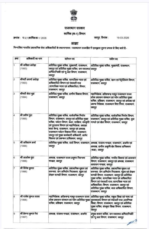 25 आईएएस और 09 आईपीएस के तबादलें, देखें सूची-Bikaner News