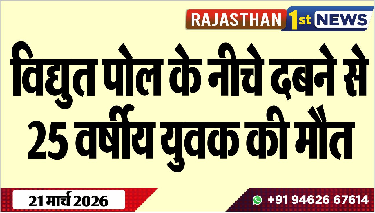 Bikaner News राजस्थान 1st न्यूज,बीकानेर। विद्युत पोल के नीचे दबने से युवक की मौत हो जाने की खबर सामने आयी है। घटना पांचू पुलिस थाना क्षेत्र के धरनोक में 19 मार्च की रात को 11 बजे के आसपास की है। इस सम्बंध में मृतक के भाई रामचन्द्र ने रिपोर्ट देते हुए बताया कि उसके भाई भगवानाराम की गांव धरनोक रोही में विद्युत पोल के नीचे दबने से मौत हो गयी। पुलिस ने प्रार्थी की रिपोर्ट के आधार पर मर्ग दर्ज कर जांच शुरू कर दी है।