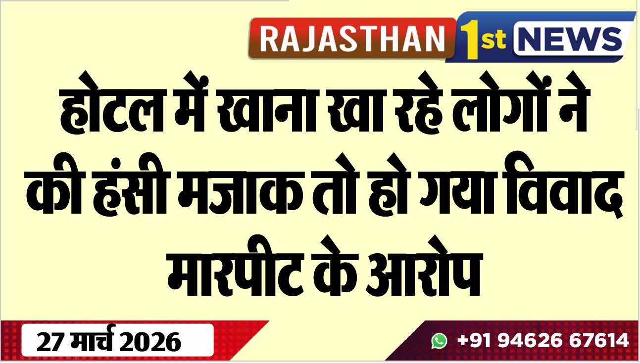 Bikaner News राजस्थान 1st न्यूज,बीकानेर। होटल पर खाना खाते समय हंसी मजाक की बात पर विवाद हो जाने की और मारपीट की खबर सामने आयी है। घटना बज्जू पुलिस थाना क्षेत्र के कृष्णा होटल के सामने बज्जू खालसा की है। इस सम्बंध में संतोषनगर के रहने वाले भाखरङ्क्षसह ने बजरंग व श्रवण के खिलाफ मुकदमा दर्ज करवाया है। परिवादी ने बताया कि वह अपने भतीजों के साथ होटल पर खाना खा रहे थे। इस दौरान हंसी मजाक में बात करने पर आरोपियों ने उसके साथ मारपीट की। पुलिस ने प्रार्थी की रिपोर्ट के आधार पर मुकदमा दर्ज कर जांच शुरू कर दी है ।