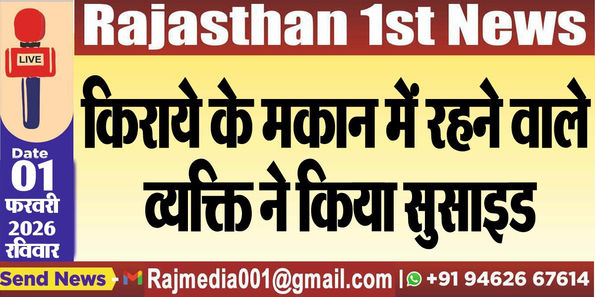 Bikaner News राजस्थान 1st न्यूज,बीकानेर। गंगाशहर पुलिस थाना क्षेत्र में व्यक्ति द्वारा फांसी लगाकर जीवनलीला समाप्त करने की खबर सामने आयी है। घटना गंगाशहर पुलिस थाना क्षेत्र के भढ्ड स्कूल के पास पुरानी लाईन गंगाशहर में 31 जनवरी की है। इस सम्बंध में मृतक के रिश्तेदार सुरजरतन ने रिपोर्ट दी है। परिवादी ने बताया कि उसके चाचा का बेटा पुखराज पुत्र श्यामलाल जो कि किराये के मकान में रहता था। परिवादी ने बताया कि उसके भाई ने घर में फांसी लगाकर जीवनलीला समाप्त कर ली। पुलिस ने प्रार्थी की रिपोर्ट के आधार पर मर्ग दर्ज कर जांच शुरू कर दी है।