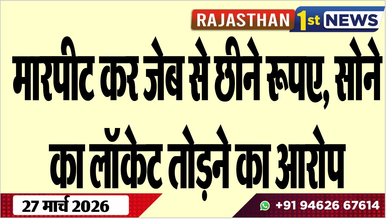 Bikaner News राजस्थान 1st न्यूज,बीकानेर। थाप-मुक्कों से मारपट करने और सोने का लॉकेट छीन ले जाने का मामला सामने आया है। इस सम्बंध में जसरासर पुलिस थाने में साजनवासी निवासी रमेश सिद्ध ने भंवरनाथ, रविन्द्रनाथ, मीरादेवी, रेवंतनाथ, पप्पूनाथ के खिलाफ मुकदमा दर्ज करवाया है। घटना रोही मेऊसर में 26 मार्च की है। इस सम्बंध में प्रार्थी ने रिपोर्ट देते हुए बताया कि आरोपियों ने एकराय होकर उसके साथ थाप-मुक्कों से मारपीट की। प्रार्थी ने बताया कि इस दौरान आरोपियों ने उसके जेब से रूपए, सोने की चैन का लॉकेट तोड़कर छीन ले गए। पुलिस ने प्रार्थी की रिपोर्ट के आधार पर मुकदमा दर्ज कर जांच शुरू कर दी है।