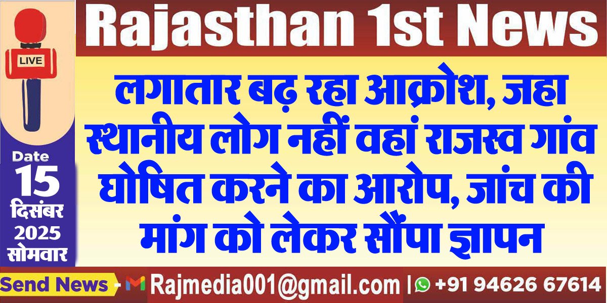 लगातार बढ़ रहा आक्रोश, जहा स्थानीय लोग नहीं वहां राजस्व गांव घोषित करने का आरोप, जांच की मांग को लेकर सौंपा ज्ञापन-Bikaner News
