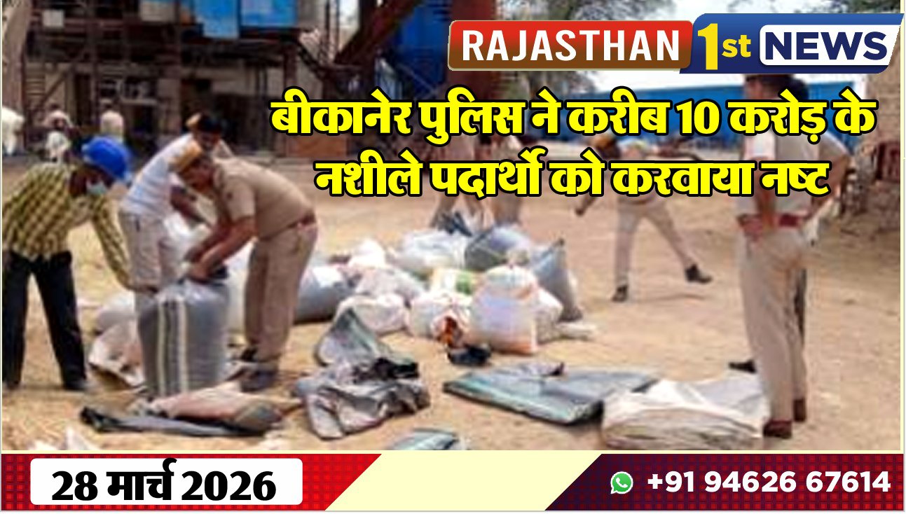 Bikaner News राजस्थान 1st न्यूज,बीकानेर। बीकानेर पुलिस ने नशीले पदार्थो के मामले में कार्रवाई करते हुए करोड़ों का नशीला पदार्थ जब्त किया था। जिस पर आज ड्रग्स डिस्पोजल कमेटी ने कार्रवाई करते हुए आज नष्टीकरण की कार्रवाई की है। एसपी मृदुल कच्छावा, अतिरिक्त पुलिस अधीक्षक चक्रतर्वी राठोड़,पुलिस निरीक्षक सुभाष बिजारणियां की उपस्थिति में जिले के पंजिबद्ध अभियोगों में जब्तशुदा अवैध नशीले पदार्थो के नष्टीकरण की कार्रवाई की गयी।