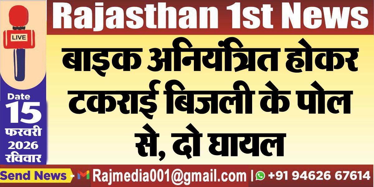 Bikaner News राजस्थान 1st न्यूज,बीकानेर। बाइक के अनियंत्रित होकर बिजली के पोल से टकराने जाने की खबर सामने आयी है। इस हादसे में दो युवक घायल हो गए। घटना नापासर पुलिस थाना क्षेत्र के नापासर-देशनोक सड़क पर शनिवार शाम को राधा कृष्ण गोशाला के पास की है। इस हादसे में बाइक सवार दो युवक घायल हो गए, जिनमें से एक गंभीर रूप से चोटिल है।