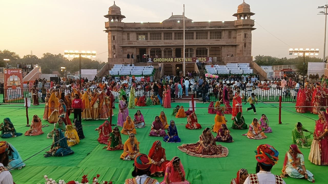 घूमर महोत्सव में बड़ी संख्या में महिलाओं विशेषकर युवतियों ने सहभागिता की। बीकानेरवासी गणमान्य जन, विद्यार्थी और बड़ी संख्या में पहुंचे आमजन डॉ करण सिंह स्टेडियम में घूमर महोत्सव के रंग में रंगे नजर आए। इस अवसर पर अतिरिक्त संभागीय आयुक्त जसवंत सिंह, यूआईटी के पूर्व चेयरमैन महावीर रांका,पूर्व महापौर नारायण चौपड़ा समेत अन्य जनप्रतिनिधि, पुष्कर में मिस राजस्थान चुनी गई कोमल सिद्ध , मिस मूमल बीकानेर पारूल, मिस मरवण खुशी, गरिमा विजय समेत बड़ी संख्या में महिलाएं, पर्यटन विभाग के संयुक्त निदेशक अनिल राठौड़, सहायक निदेशक महेश व्यास,पर्यटन अधिकारी पवन शर्मा, सहायक पर्यटन अधिकारी नेहा शेखावत एवं योगेश राय, ज्योति स्वामी, हसन खान तथा पर्यटन सुरक्षा बल के प्रतिनिधियों सहित बड़ी संख्या में पुलिस के जवान,एनसीसी कैडेट्स व अन्य गणमान्य लोग उपस्थित रहे। कार्यक्रम में मंच संचालन ज्योति रंगा, गोपाल जोशी , मोनिका गौड़ और ,नीतू आचार्य ने किया।