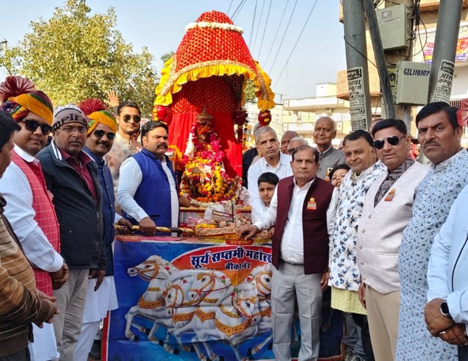 सूर्य रथ यात्रा पर पुष्य वर्षा, सूर्य कैलेडर-पॉलिथीन मुक्त थैले वितरण-Bikaner News
