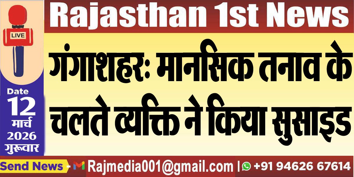 Bikaner News राजस्थान 1st न्यूज,बीकानेर। मानसिक रूप से परेशानी के चलते तनाव में आकर व्यक्ति द्वारा सुसाइड करने की खबर सामने आयी है। घटना गंगाशहर पुलिस थाना क्षेत्र के वाल्मीकि बस्ती में 11 मार्च की दोपहर की है। इस सम्बंध में मृतक के भाई प्रेमरतन तेजी ने रिपोर्ट दी है। परिवादी ने बताया कि उसके भाई प्रदीप जो कि मानसिक रूप से परेशानी के चलते तनाव में था। तनाव के चलते दोपहर के समय में उसके भाई ने फांसी लगाकर सुसाइड कर लिया। पुलिस ने प्रार्थी की रिपोर्ट के आधार पर मर्ग दर्ज कर जांच शुरू कर दी है।