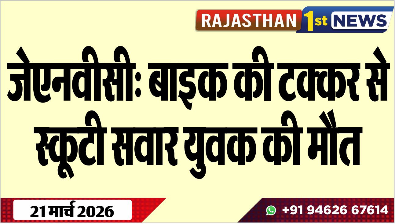 Bikaner News राजस्थान 1st न्यूज,बीकानेर। स्कूटी सवार युवक के बाइक द्वारा टक्कर मारने और मौत हो जाने की खबर सामने आयी है। घटना जेएनवीसी पुलिस थाना क्षेत्र के सेक्टर नंबर 5 में 14 मार्च की रात को साढ़े आठ बजे के आसपास की है। इस सम्बंध में हिमांशु शर्मा ने कृष्ण नाम के बाइक सवार के खिलाफ मुकदमा दर्ज करवाया है। प्रार्थी ने बताया कि उसका बेटा हार्दिक स्कूटी लेकर घर आ रहा था।