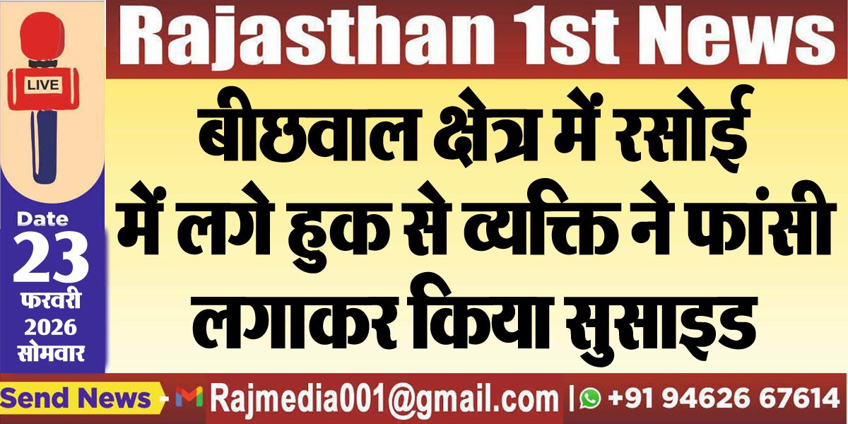 Bikaner News राजस्थान 1st न्यूज,बीकानेर। रसोई में हुक से फांसी लगाकर व्यक्ति द्वारा सुसाइड करने की खबर सामने आयी है। घटना बीछवाल पुलिस थाना क्षेत्र कें पांडे जी की टाल के पीछे इन्द्रा कॉल ोनी में 22 फरवरी की दोपहर को 2 बजे के आसपास की है।