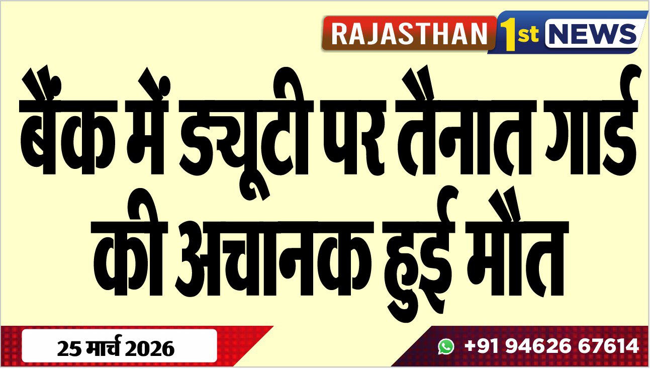 Bikaner News राजस्थान 1st न्यूज,बीकानेर। बैंक में गार्ड के पद पर ड्यूटी रहे व्यक्ति की अचानक मौत हो जाने की खबर सामने आयी है। घटना सदर पुलिस थाना क्षेत्र के पब्लिक पार्क ब्रांच एसबीआई की है। इस सम्बंध में विराट नगर कोटपुतली के रहने वाले विनोद गुर्जर ने रिपोर्ट दी है।