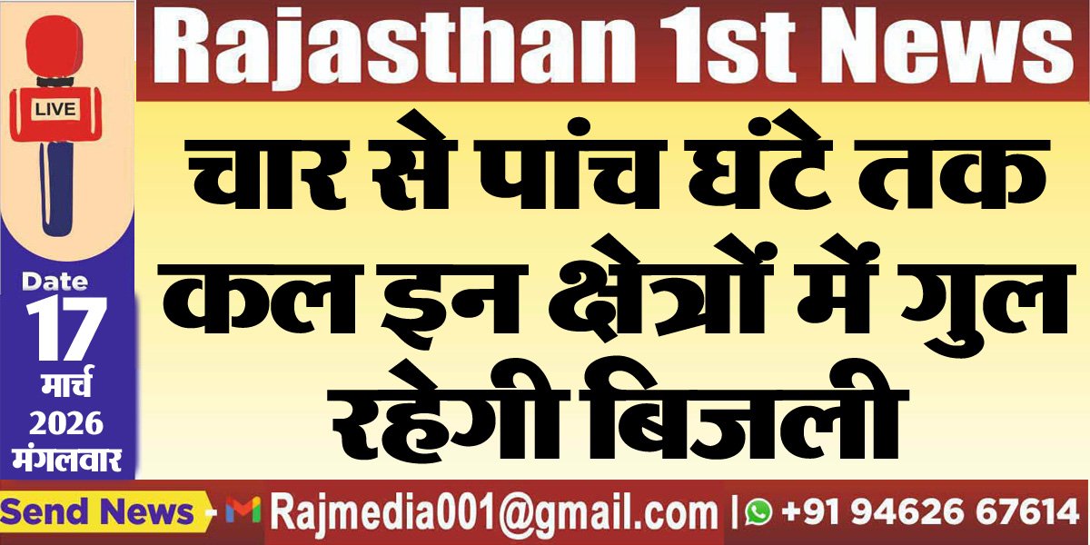 Bikaner News राजस्थान 1stन्यूज,बीकानेर। बीकानेर शहर के निम्न क्षेत्रों में विद्युत तंत्र के रख-रखाव के दौरान बुधवार 18 मार्च को प्रात: 08 बजे से दोपहर 12:30 बजे तक विद्युत आपूर्ति बाधित रहेगी। कल खारा रीको इण्ड एरिया फीड न 1 से 7 का क्षेत्र, प्रात: 06:30 बजे से 10 बजे तक हिंदू छीपों का मोहला, नायको का मौहल्ला, मेन रोड का क्षेत्र,