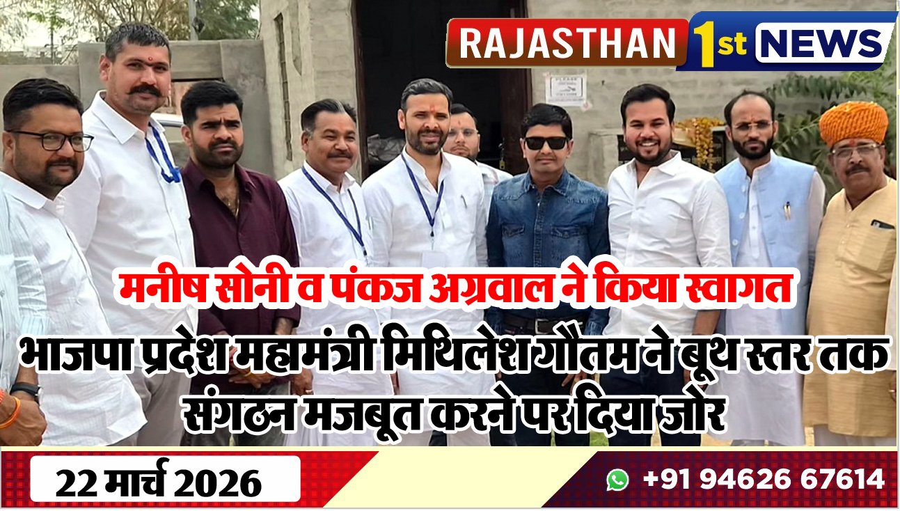 राजस्थान 1st न्यूज,बीकानेर। भारतीय जनता पार्टी के प्रदेश महामंत्री मिथिलेश गौतम के बीकानेर आगमन पर पार्टी कार्यकर्ताओं द्वारा भव्य स्वागत किया गया। इस अवसर पर जिलाध्यक्ष श्याम पंचारिया के नेतृत्व में कार्यकर्ताओं ने उनका अभिनंदन किया। प्रदेश महामंत्री मिथिलेश गौतम ने कार्यकर्ताओं को संबोधित करते हुए संगठन को और अधिक मजबूत करने पर जोर दिया। उन्होंने कहा कि बूथ स्तर तक संगठन की मजबूती ही पार्टी की सबसे बड़ी ताकत है। उन्होंने कार्यकर्ताओं से सक्रिय भूमिका निभाने और आमजन से जुड़कर सरकार की योजनाओं को घर-घर तक पहुंचाने का आह्वान किया।