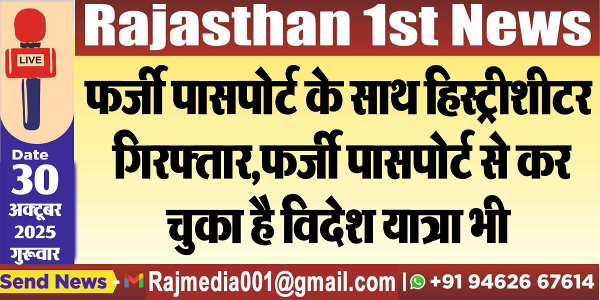 फर्जी पासपोर्ट के साथ हिस्ट्रीशीटर गिरफ्तार,फर्जी पासपोर्ट से कर चुका है विदेश यात्रा भी-Crime News