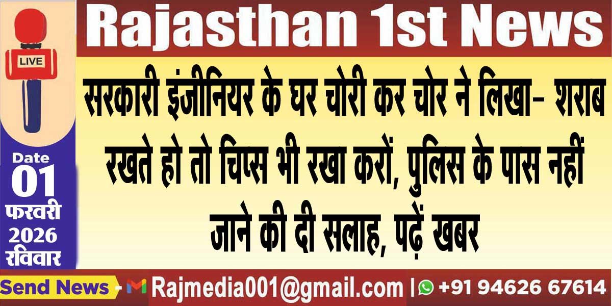 सरकारी इंजीनियर के घर चोरी कर चोर ने लिखा- शराब रखते हो तो चिप्स भी रखा करों, पुलिस के पास नहीं जाने की दी सलाह, पढ़ें खबर-Rajasthan News