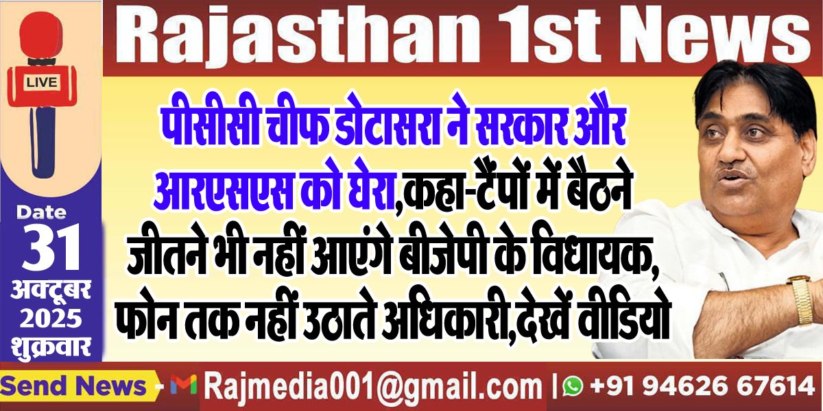 पीसीसी चीफ डोटासरा ने सरकार और आरएसएस को घेरा,कहा-टैंपों में बैठने जीतने भी नहीं आएंगे बीजेपी के विधायक,फोन तक नहीं उठाते अधिकारी,देखें वीडियो-Rajasthan News