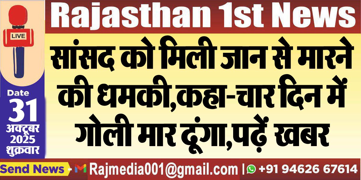 सांसद को मिली जान से मारनेे की धमकी,कहा-चार दिन में गोली मार दूंगा,पढ़ें खबर-national news