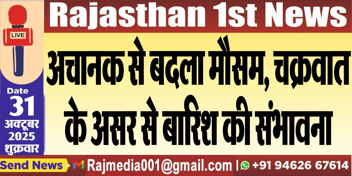 अचानक से बदला मौसम, चक्रवात के असर से बारिश की संभावना-Weather Update