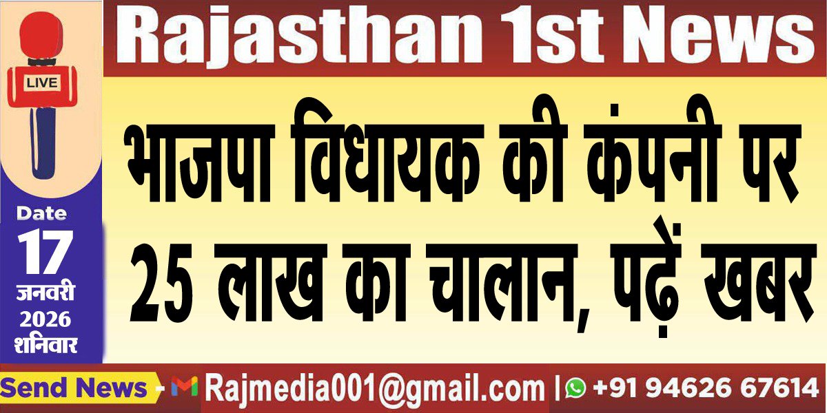भाजपा विधायक की कंपनी पर 25 लाख का चालान, पढ़ें खबर-Rajastahn News