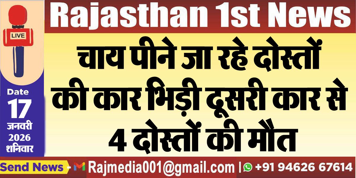 चाय पीने जा रहे दोस्तों की कार भिड़ी दूसरी कार से, 4 दोस्तों की मौत-Rajasthan News