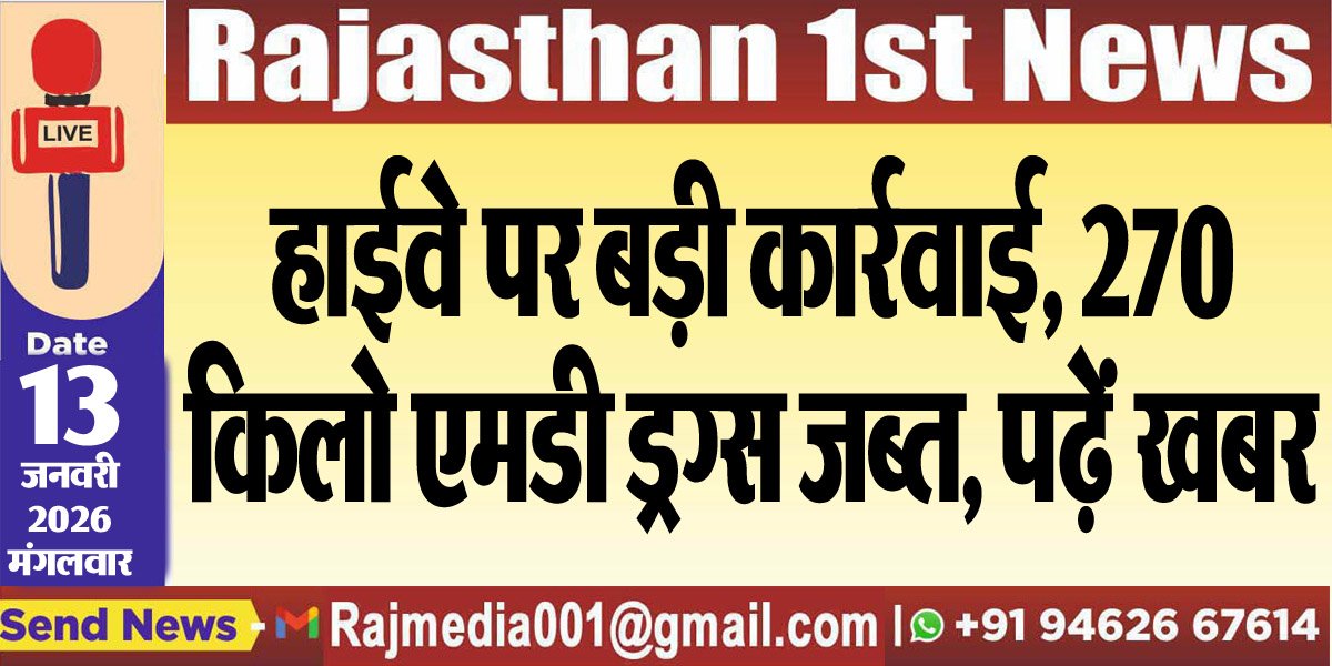 हाईवे पर बड़ी कार्रवाई, 270 किलो एमडी ड्रग्स जब्त, पढ़ें खबर-Rajasthan News