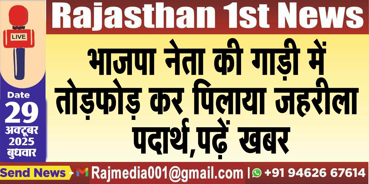 भाजपा नेता की गाड़ी में तोडफ़ोड़ कर पिलाया जहरीला पदार्थ,पढ़ें खबर-Rajasthan News