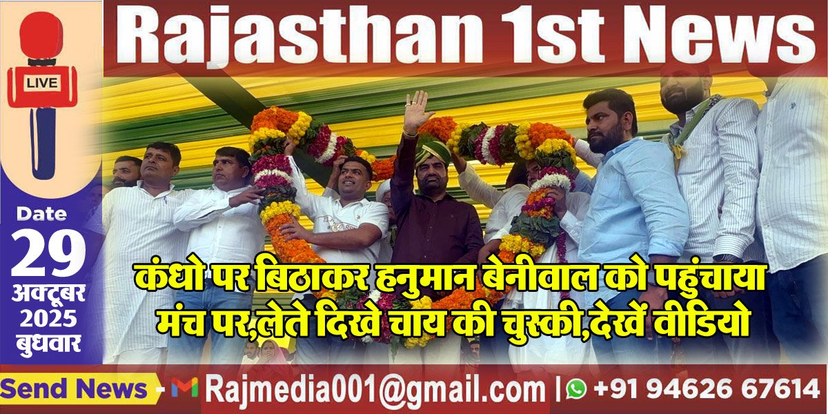 कंधो पर बिठाकर हनुमान बेनीवाल को पहुंचाया मंच पर,लेते दिखे चाय की चुस्की,देखें वीडियो-RLP News