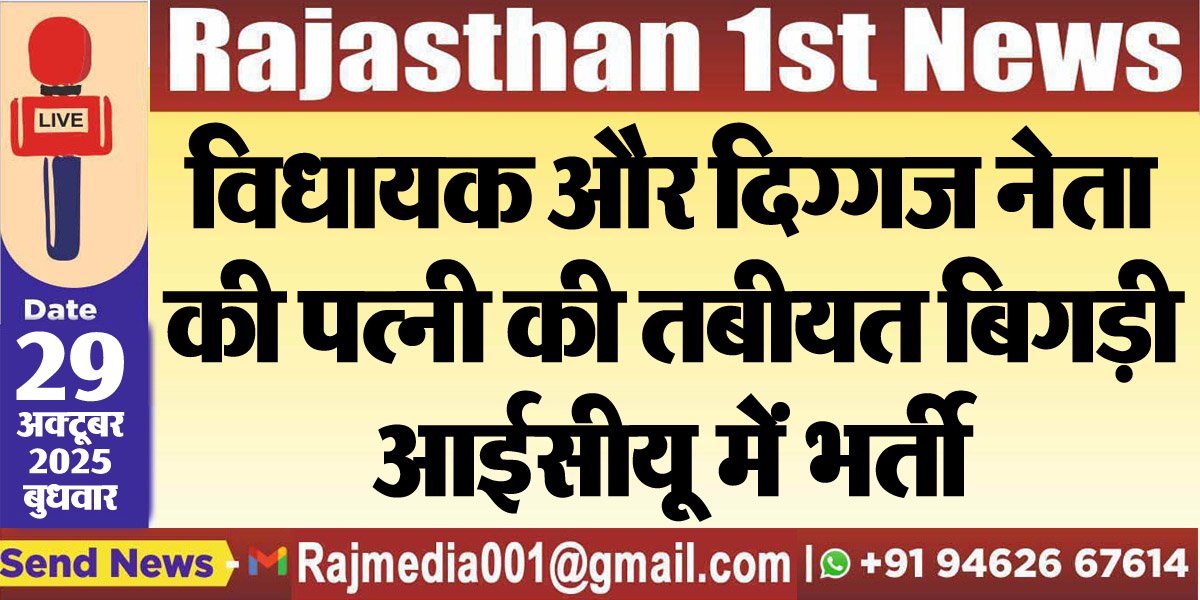विधायक और दिग्गज नेता की पत्नी की तबीयत बिगड़ी,आईसीयू में भर्ती-Rajasthan News