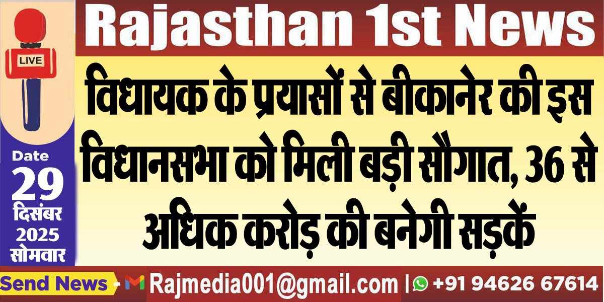 विधायक के प्रयासों से बीकानेर की इस विधानसभा को मिली बड़ी सौगात, 36 से अधिक करोड़ की बनेगी सड़कें-Bikaner News
