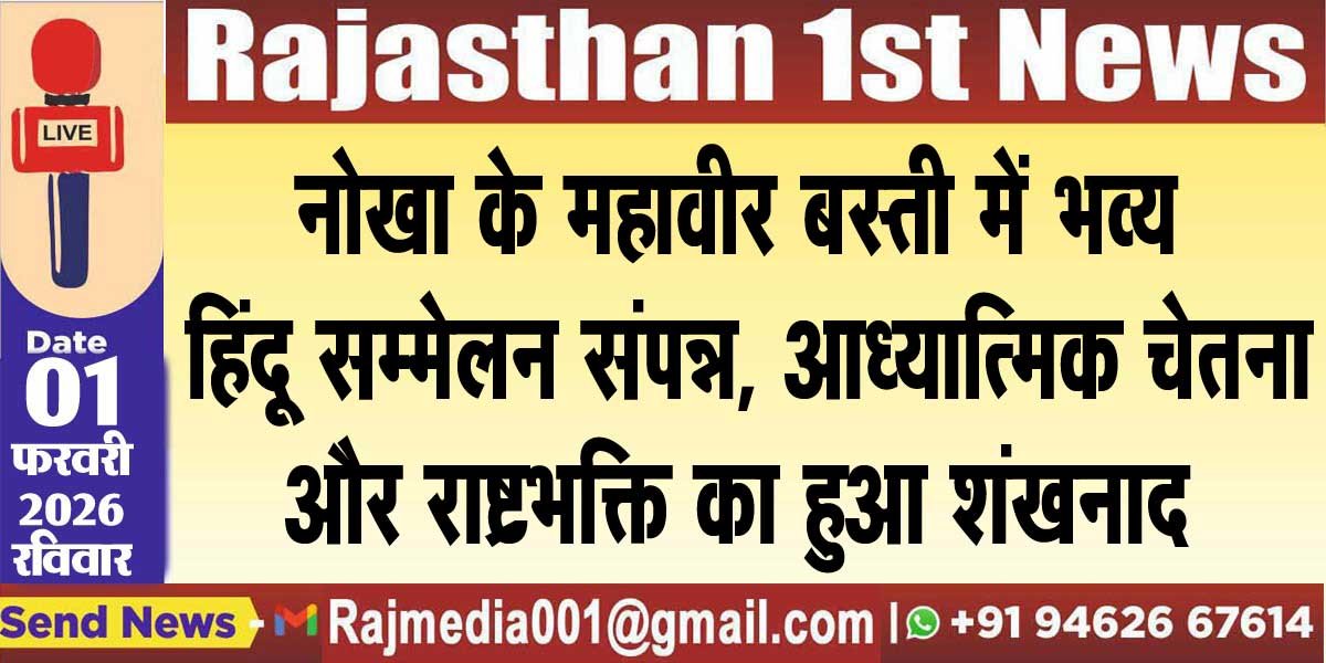 नोखा के महावीर बस्ती में भव्य हिंदू सम्मेलन संपन्न; आध्यात्मिक चेतना और राष्ट्रभक्ति का हुआ शंखनाद-Bikaner News
