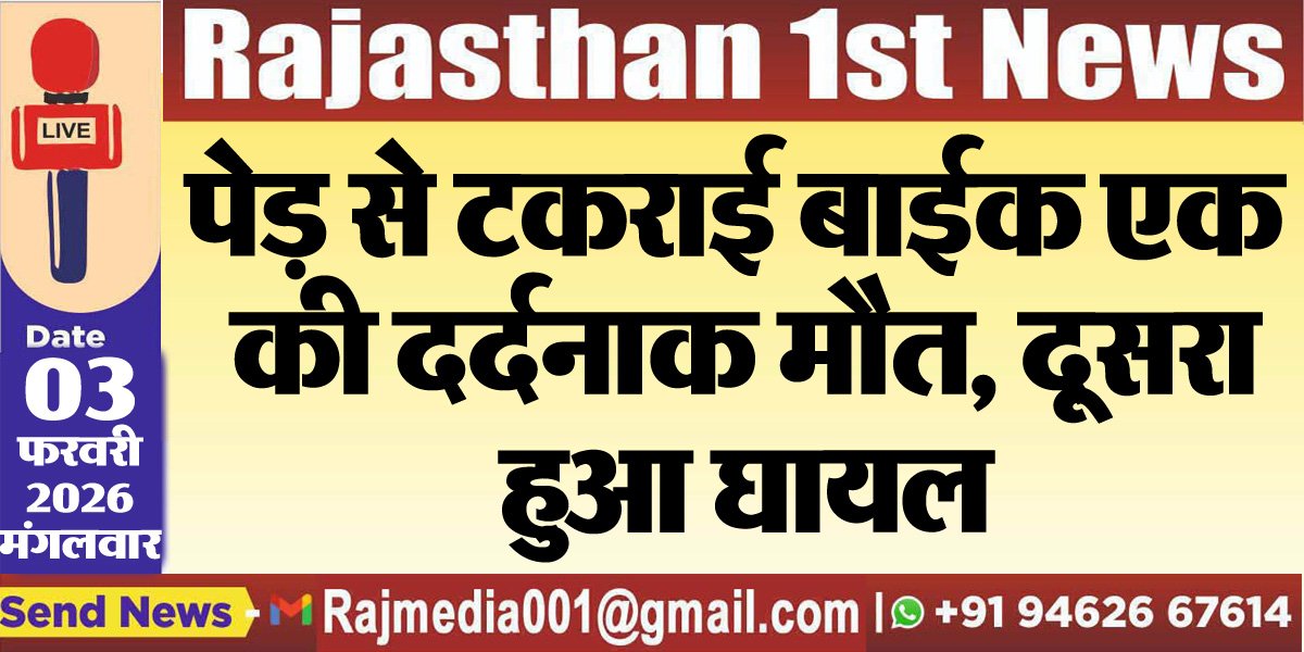 पेड़ से टकराई बाईक एक की दर्दनाक मौत, दूसरा हुआ घायल